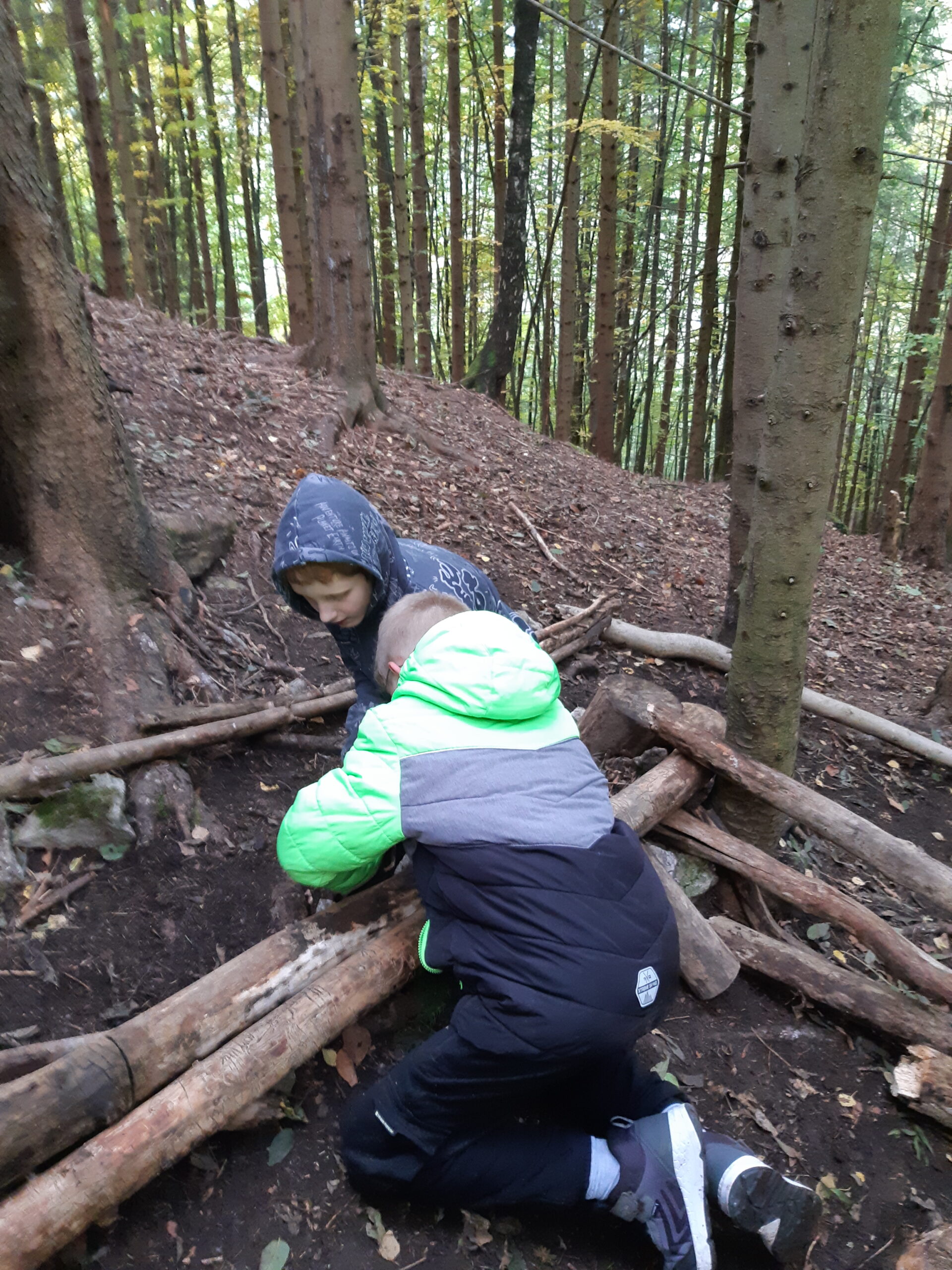 Das Bauen einer großen Kugelbahn sowie eines gemeinsamen Unterschlupfes im Wald waren weitere Programmpunkte, welche die Klassengemeinschaft stärken.