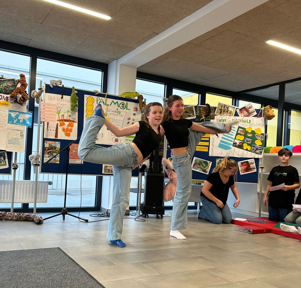 Am Ende der Veranstaltung blickte man in über 60 begeisterte Gesichter. Der Applaus der Zuschauer war der wohlverdiente Lohn für die harte Arbeit der letzten Wochen. Die Schülerinnen und Schüler der 1.b haben an diesem Tag nicht nur bewiesen, dass sie viel über den Regenwald gelernt haben, sondern auch, wie man ein großes Publikum mit Ausstrahlung und Teamgeist in den Bann zieht.