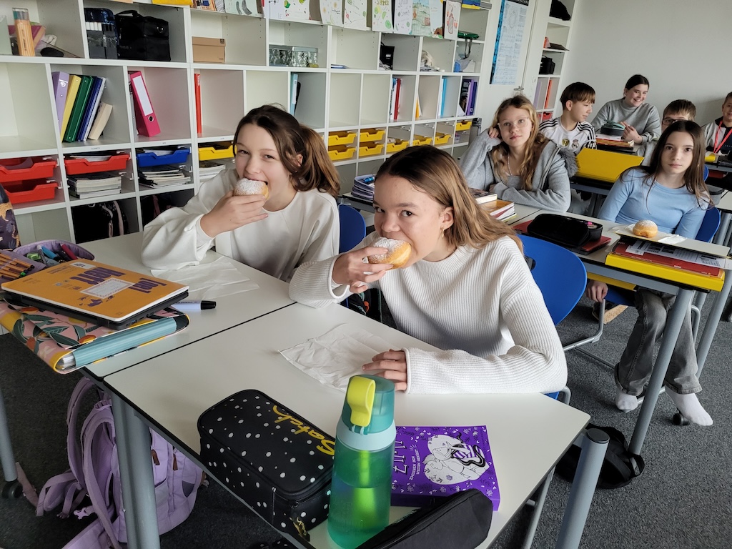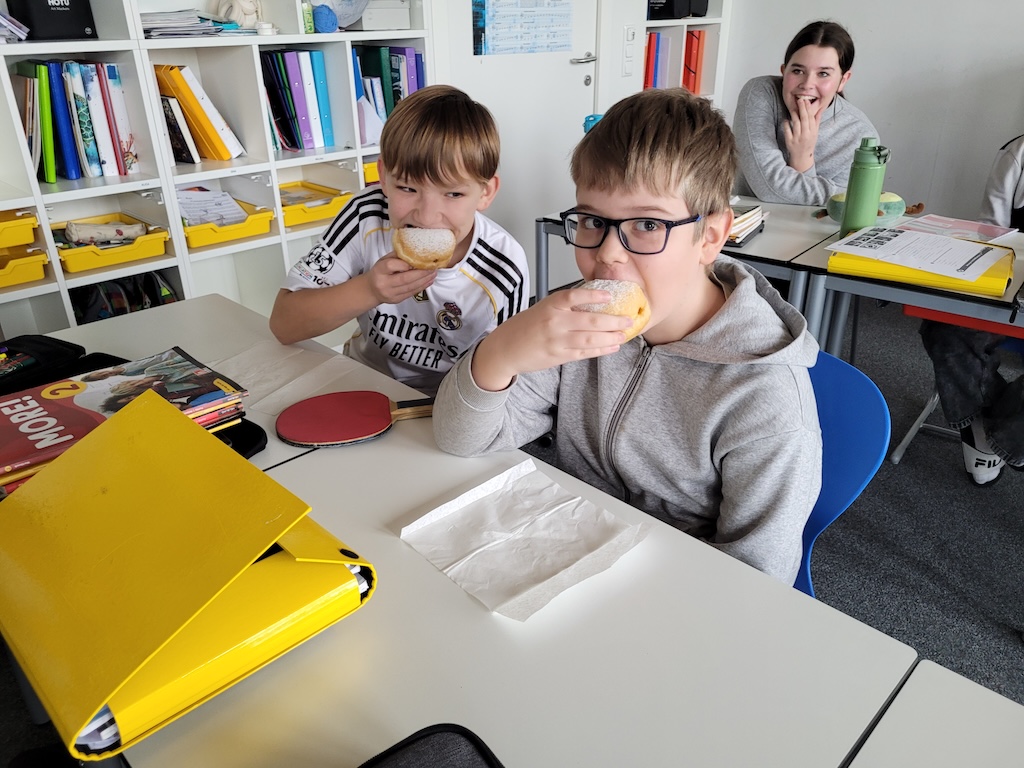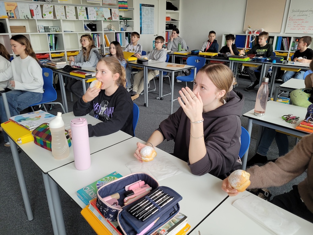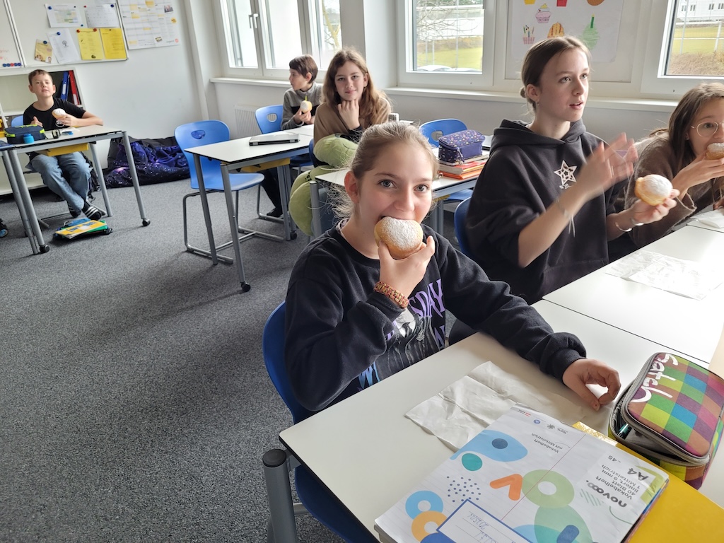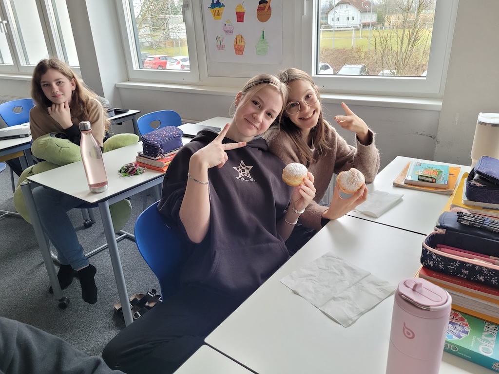 Alle Schülerinnen und Schüler sowie das Schulpersonal wurden mit köstlichen Faschingskrapfen versorgt.