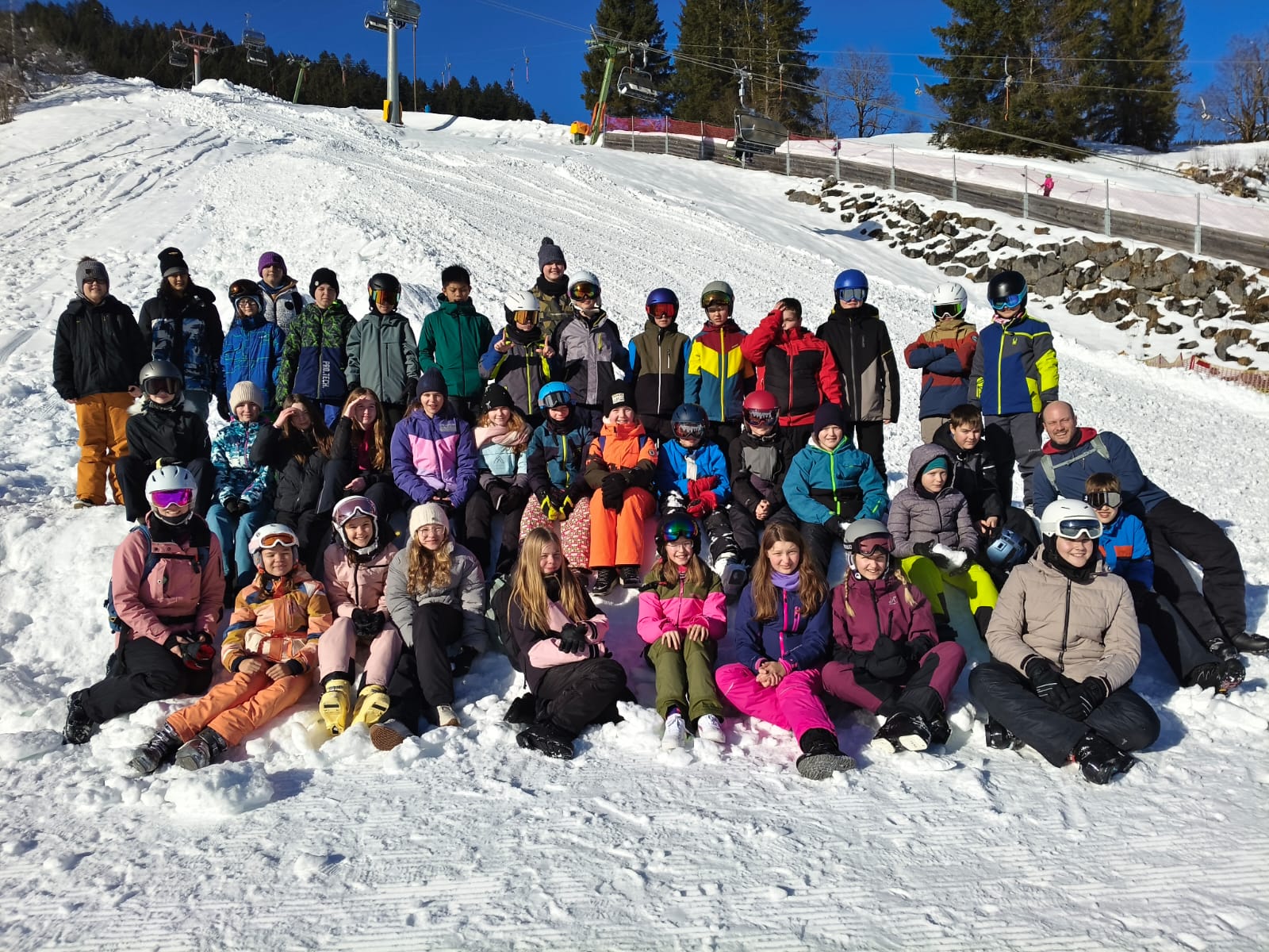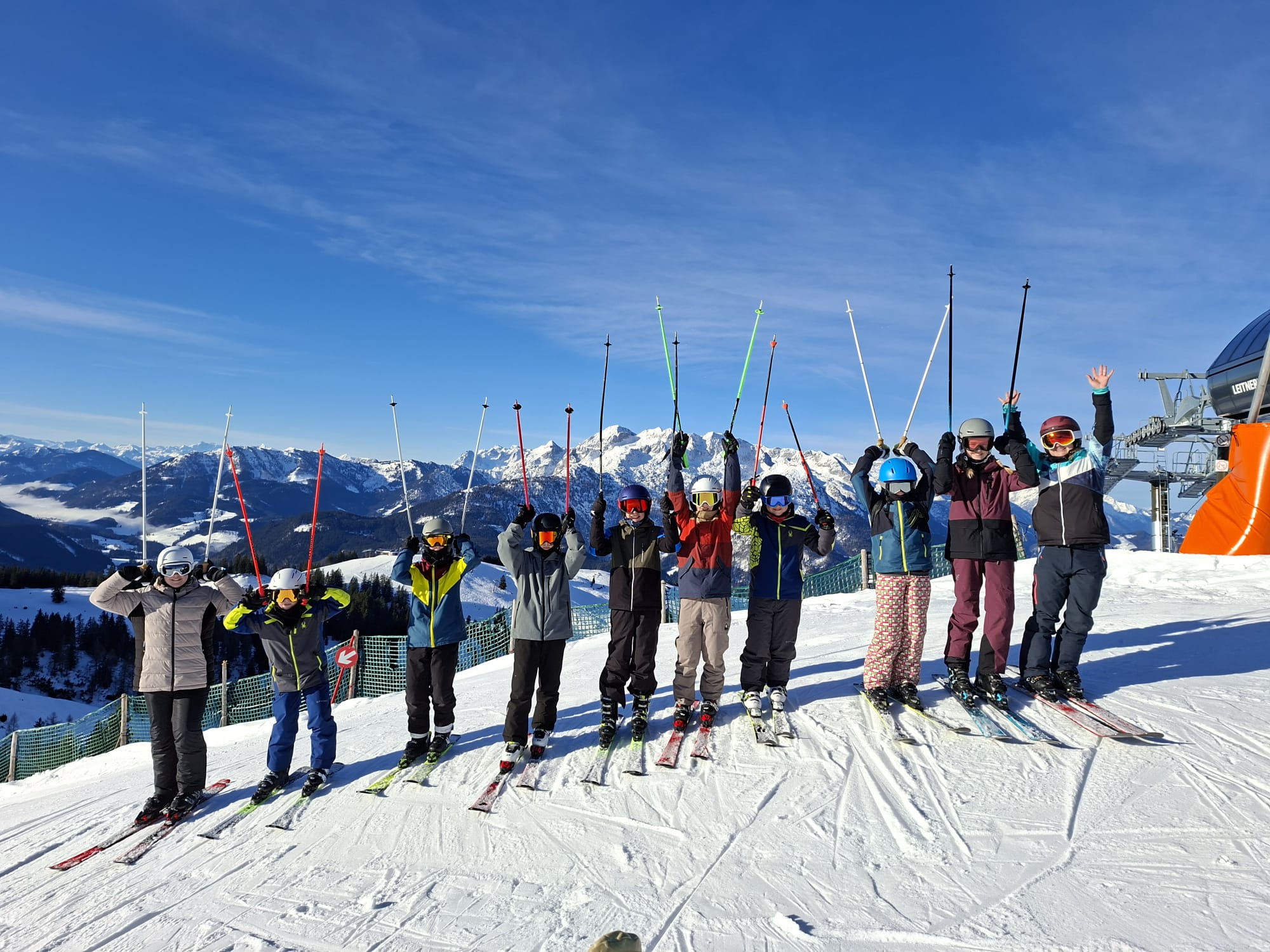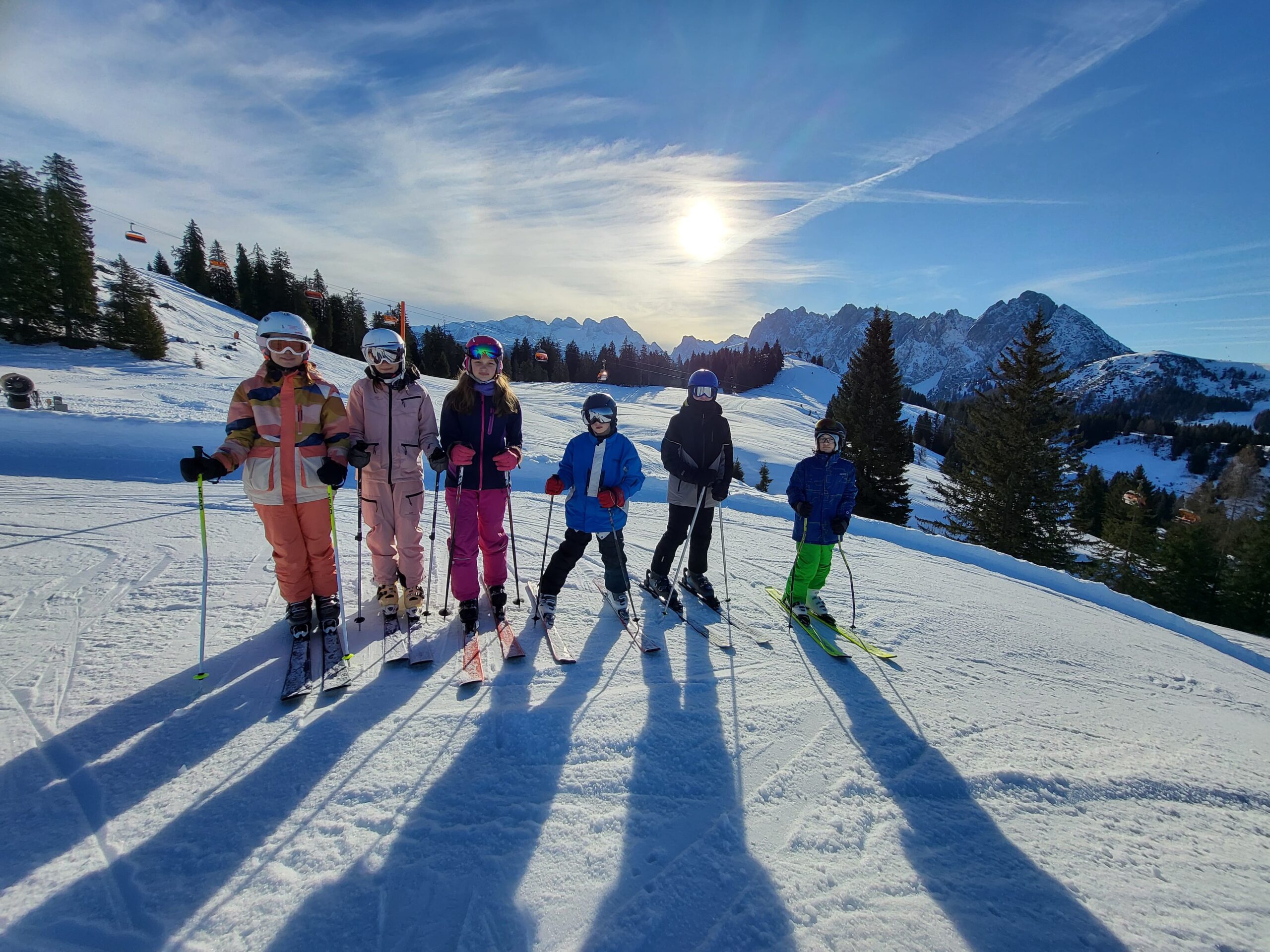 Im Skigebiet Gosau genossen die Schülerinnen und Schüler der zweiten Klassen (2a, 2b und 2c) vergangene Woche einen erfolgreichen Skikurs unter herrlichen Wetter- und Schneebedingungen. Die Teilnehmer wurden entsprechend ihrer Fähigkeiten in drei Leistungsgruppen eingeteilt: Anfänger, Mittelstufe und Fortgeschrittene. Es war erfreulich zu sehen, wie jedes Kind eine deutliche Lernentwicklung zeigte. Einige Anfänger meisterten bereits am zweiten Kurstag, wenn auch gemächlich, ihre erste rote Piste.